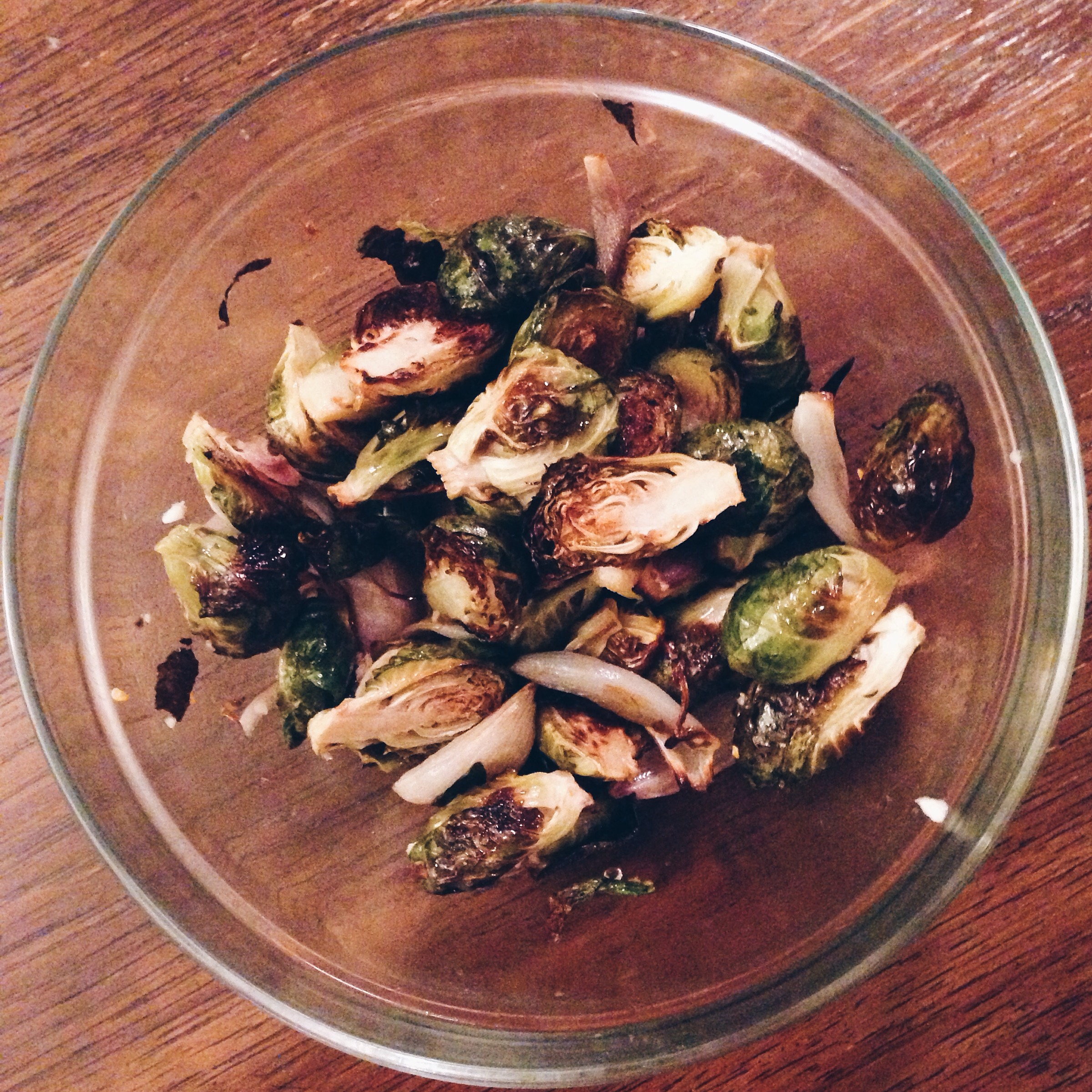 • Roasted Brussel Sprouts and Shallots with Fish Sauce Vinaigrette