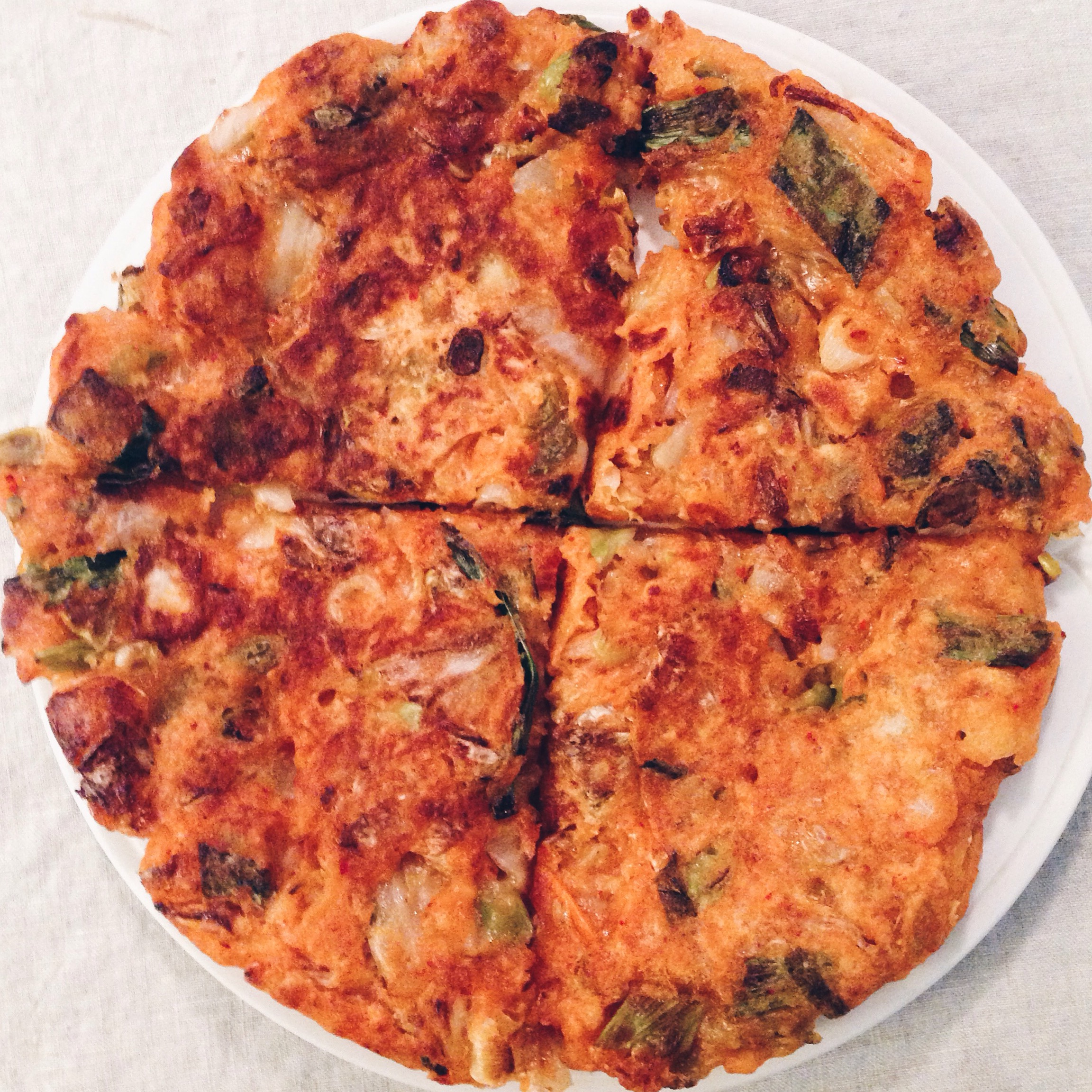 1. Place kimchi, kimchi juice, scallions, salt, sugar, flour, and water into a medium sized bowl. Mix well with a spoon.